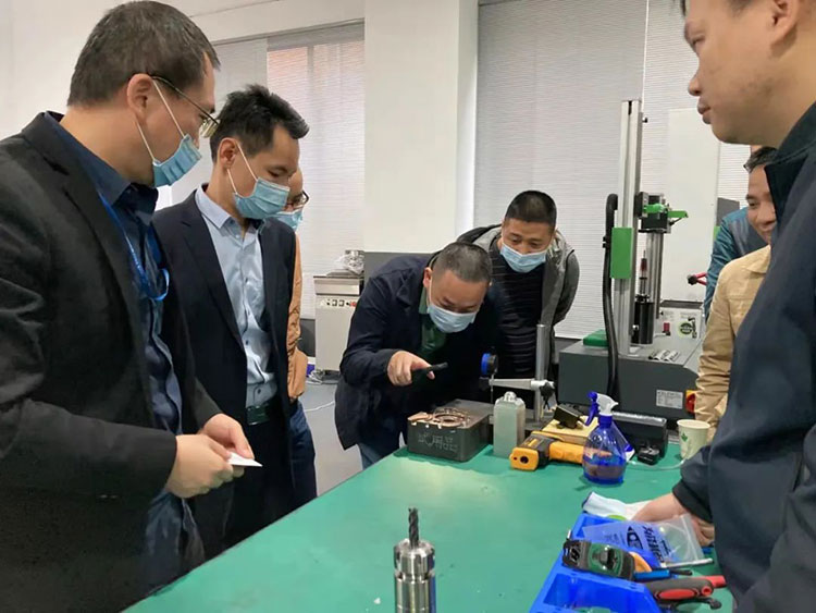 參觀國增實訓(xùn)中心期間,新寶模具分公司品管負(fù)責(zé)人郭博偉、模具設(shè)計主管覃任世對增減材一體化裝備表示了濃厚的興趣,就該設(shè)備的基本使用情況、性能優(yōu)勢、業(yè)務(wù)應(yīng)用范疇等進(jìn)行了深入的了解。同時,李國雄總經(jīng)理結(jié)合自身企業(yè)的業(yè)務(wù)需求與廣東增減材科技未來的業(yè)務(wù)合作內(nèi)容進(jìn)行了初步探討。
