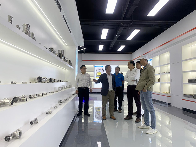 在廣東思豪科技集團周富強董事長的帶領下分別參觀了展廳和生產車間。介紹了集團下屬公司廣東思豪流體技術有限公司,該公司是一家專注于壓縮空氣、惰性氣體、氮氣、真空、飲用水、工業循環水廠、供應鏈到市場營銷的創新新企業。主要產品為具有模塊化快速連接的卡壓式、卡凸式、溝槽式鋁合金管道和不銹鋼管道。同時參觀了設備公司和管件廠,通過周富強董事長的介紹,讓大家對思豪集團也有了更深一步的了解。