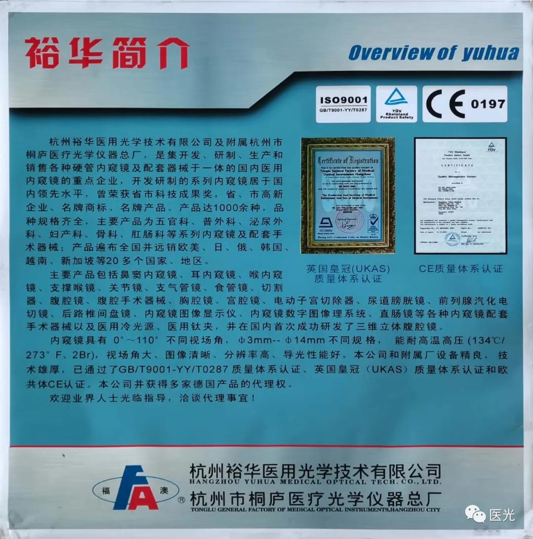 杭州市桐廬醫(yī)療光學(xué)儀器總廠(桐廬醫(yī)光總廠)1990年創(chuàng)立,起初在桐廬縣洋塘村草創(chuàng),后擴(kuò)大規(guī)模,移至桐廬縣深澳村。人才是核心競(jìng)爭(zhēng)力,全國(guó)光學(xué)權(quán)威專家白聞喜先生,原國(guó)家醫(yī)藥管理局醫(yī)用光學(xué)檢測(cè)中心主任陳達(dá)權(quán)總工等人才均被申屠先生網(wǎng)羅至麾下。在那之后公司承接國(guó)家項(xiàng)目,設(shè)計(jì)開(kāi)發(fā)高新產(chǎn)品,其中設(shè)計(jì)的鼻竇內(nèi)窺鏡在1994年上市,成為國(guó)內(nèi)第二家浙江首家硬管內(nèi)窺鏡生產(chǎn)企業(yè),1995年鼻竇鏡成套器械獲國(guó)家光譜部頒發(fā)的“優(yōu)秀新產(chǎn)品技術(shù)三等獎(jiǎng)”,并且鼻竇鏡及其配套的手術(shù)器械曾一度占國(guó)有產(chǎn)品市場(chǎng)的70-80%。10余年發(fā)展,2003年的醫(yī)光已成為醫(yī)療器械的專業(yè)生產(chǎn)企業(yè),逐步形成了以研發(fā)為核心競(jìng)爭(zhēng)力的企業(yè)競(jìng)爭(zhēng)優(yōu)勢(shì)。