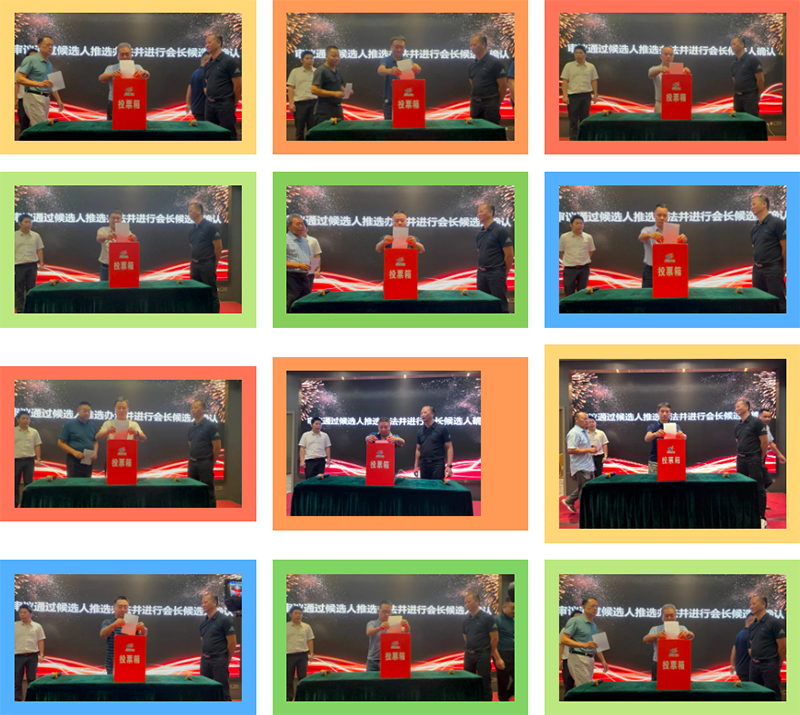 4、審議通過候選人推選辦法并進行會長候選人確認。現場按照換屆選舉程序,在監(jiān)票人黎毅明、謝偉新的監(jiān)督下派出34張選舉票,并收回34張選舉票,計票人謝偉新現場計票,由唱票人黎毅明宣讀投票結果,張勇帆全票通過連任下一屆會長候選人(選舉環(huán)節(jié)公開透明)。