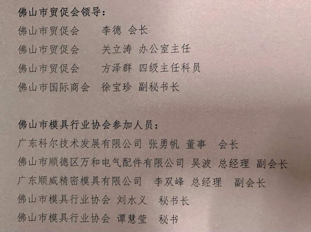 協會表示,此次指導為行業發展指明了清晰方向,未來將深入落實李德會長指示精神,持續完善服務體系,深化與市貿促會的常態化合作,推動佛山模具產業向高端化、智能化、國際化邁進,為粵港澳大灣區制造業協同發展注入更強動力。接下來,協會將整理行業動態和數據,著手準備成立佛山市貿促會模具行業委員會,更好的帶領佛山模具行業開拓市場、布局產業。會議結束后進行了合影留念。