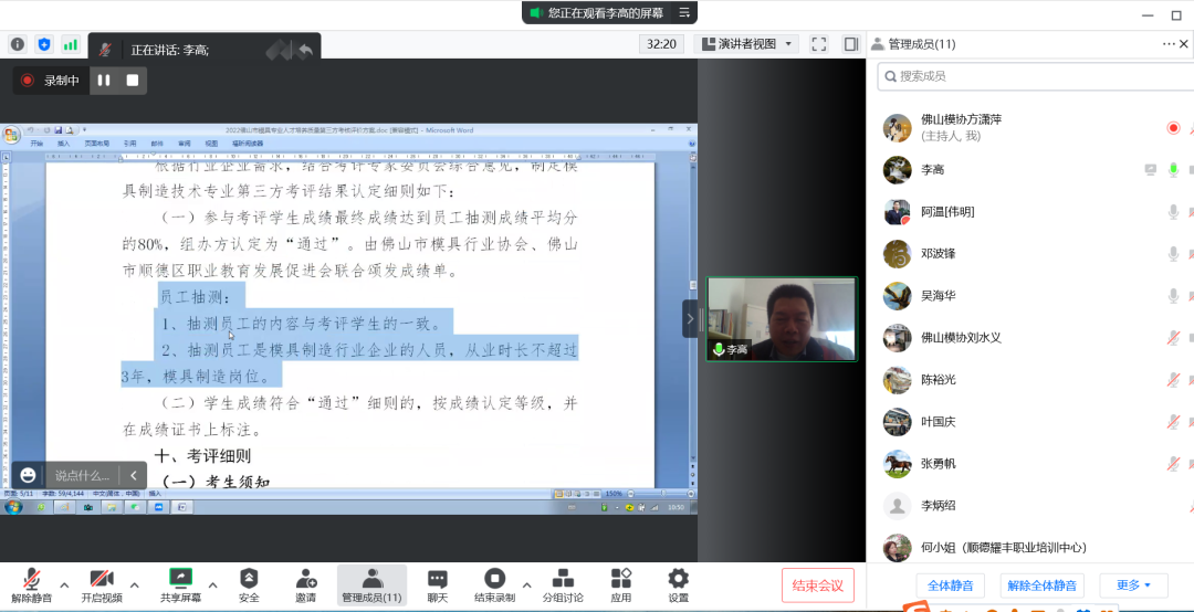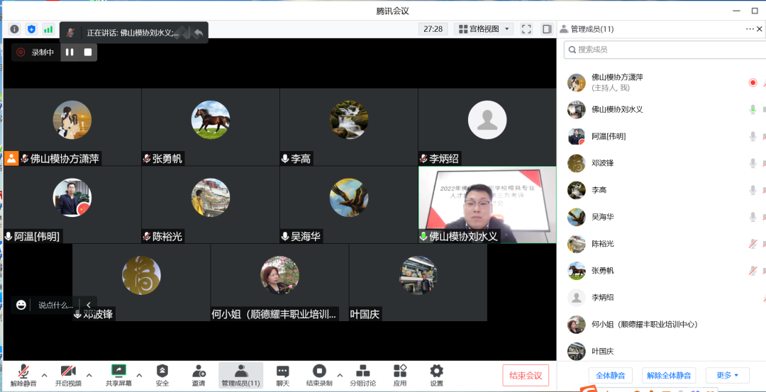 根據(jù)《佛山市教育局關(guān)于開展2022年中等職業(yè)學(xué)校人才培養(yǎng)質(zhì)量第三方考核評(píng)價(jià)工作的通知》(佛山教研〔2022〕22號(hào))精神,為提高職業(yè)教育人才培養(yǎng)質(zhì)量,推動(dòng)中職學(xué)校人才培養(yǎng)與企業(yè)需求緊密結(jié)合,順德區(qū)職業(yè)教育發(fā)展促進(jìn)會(huì)、佛山市模具行業(yè)協(xié)會(huì)及相關(guān)模具制造企業(yè)合作開展中職學(xué)校模具專業(yè)人才培養(yǎng)質(zhì)量第三方考核評(píng)價(jià)工作。為做好相關(guān)考評(píng)工作的開展,聽取考評(píng)工作的建議,2022年12月21日召開佛山市中職學(xué)校模具專業(yè)人才培養(yǎng)質(zhì)量第三方考核評(píng)價(jià)專家研討會(huì)(線上騰訊會(huì)議)。會(huì)議由劉水義秘書長(zhǎng)主持,與會(huì)人員有:佛山市模具專業(yè)第三方考評(píng)專家委員會(huì)成員、順德區(qū)職業(yè)教育發(fā)展促進(jìn)會(huì)、佛山模協(xié)和學(xué)校相關(guān)負(fù)責(zé)人。
