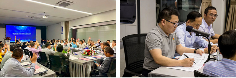 審議協會2022年財務收支報告,由協會秘書長進行財務收支報告解讀和說明,各理事代表認真審議和詢問,最后,全體理事會成員舉手通過。